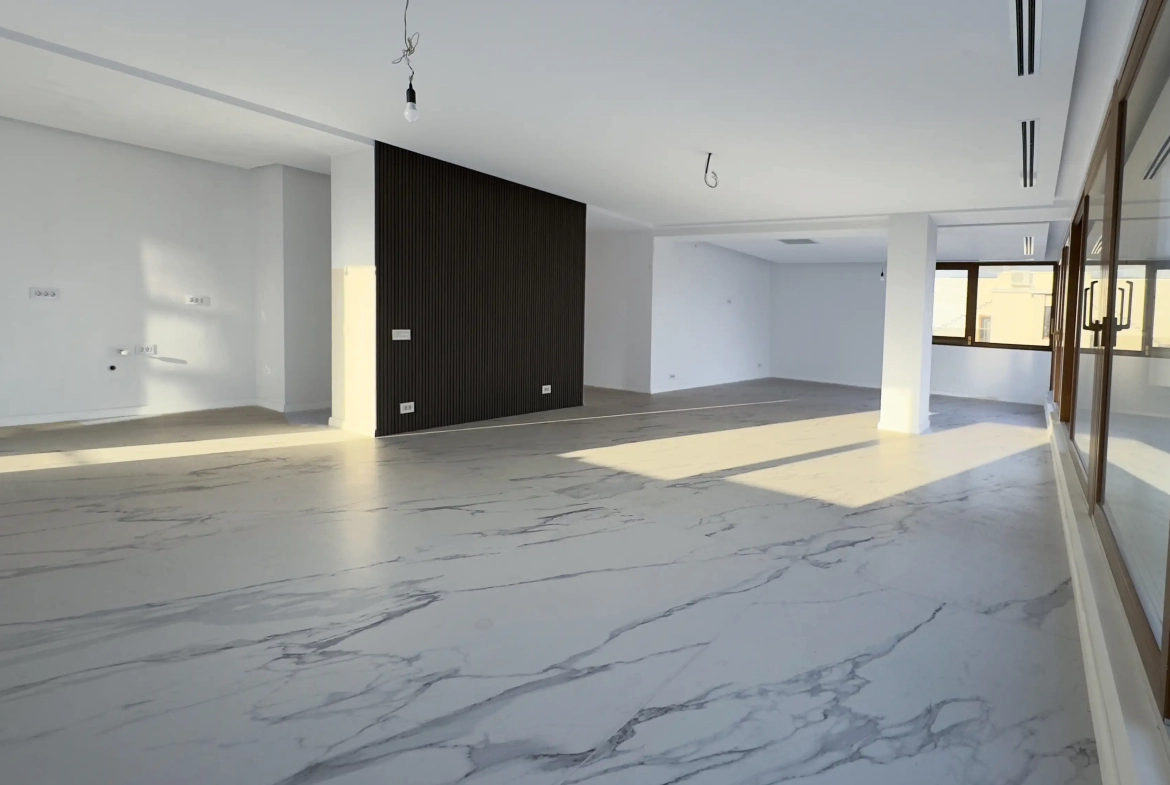 Compartimentarea este gândită inteligent și include trei dormitoare luminoase, două băi spațioase cu dotări premium, un living și dining de 66 mp și o bucătărie open-space modernă.