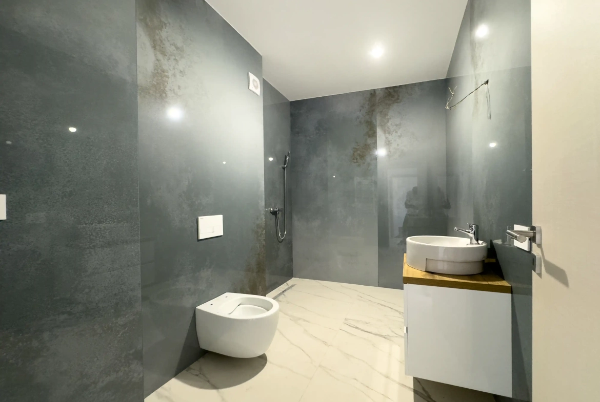Finisajele sunt premium: parchet triplu stratificat de calitate superioară, ceramică italiană Eimil Ceramica, baterii sanitare Jacuzzi, tâmplărie Salamander, climatizare Zephir cu tehnologie inverter, centrală termică Viessmann și încălzire prin pardoseală pentru un confort sporit și un design elegant.