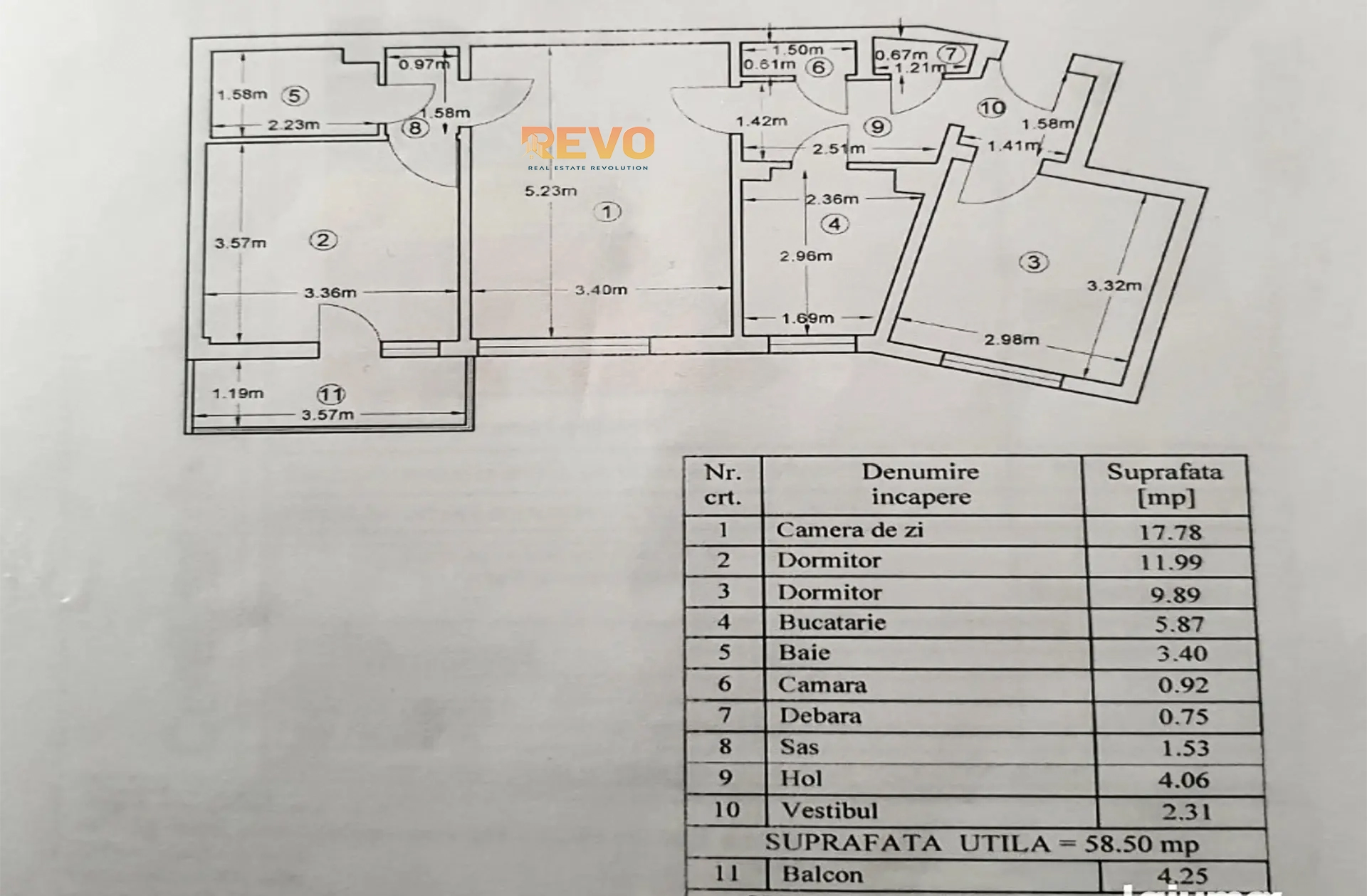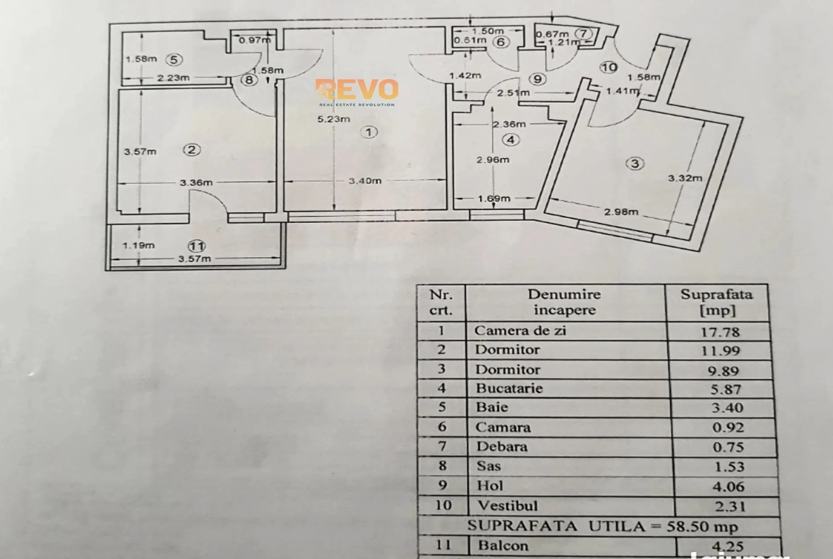 Suprafață utilă: 58,5 mp