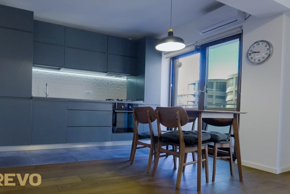 Este compartimentat eficient, având dormitor separat, living open space cu bucătărie, baie și 2 balcoane. Dispune de spații de depozitare generoase, aer condiționat și centrală proprie, asigurând confort termic pe tot parcursul anului.